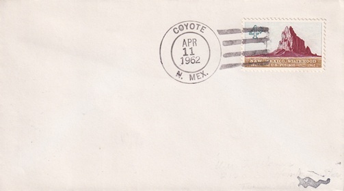 | Hand cancellation: "PETACA, N. MEX. MAR 29 1962". |