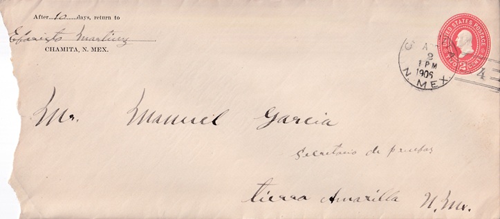 | Doane hand cancellation: "CHAMITA, N. MEX. APR 2 1906 | 4 |". [TPC] |