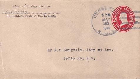 Hand cancellation: "CERRILLOS, N. MEX. MAY 26 1914".