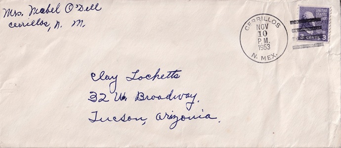 Hand cancellation: "CERRILLOS, N. MEX. NOV 10 1953".