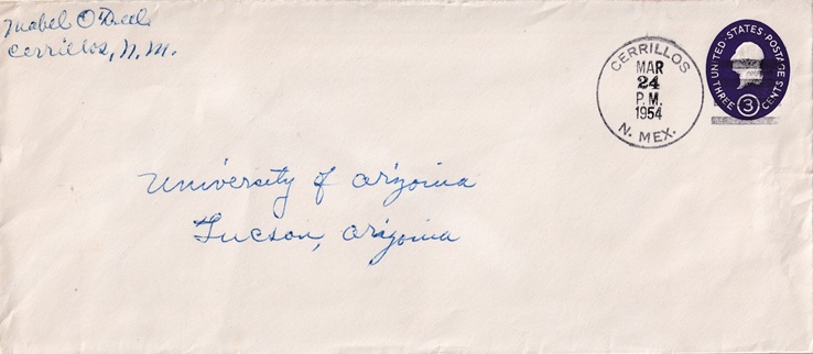 Hand cancellation: "CERRILLOS, N. MEX. MAR 24 1954".