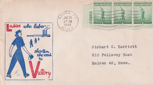 ![]() | This cacheted cover is for the first day of issue of the New Mexico Statehood centennial forever postage stamp. Special machine slogan cancellation: "SANTA FE, NM 87501 JAN 6 2012 | FIRST DAY OF ISSUE |". |