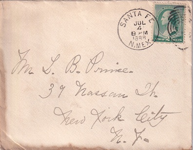 ![]() | Hand cancellation: "SANTA FE, N.MEX. JUL 4 1888". [TPC] |
