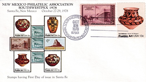 ![]() | Special hand cancellation: "NMPA SOUTHWESTPEX 1978 STATION, SANTA FE, NM 87501 OCT 27 1978". |