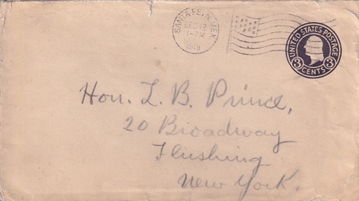 ![]() | Hand cancellation on back: "REC'D., SANTA FE, N.MEX. MAR 10 1906". [TPC] |