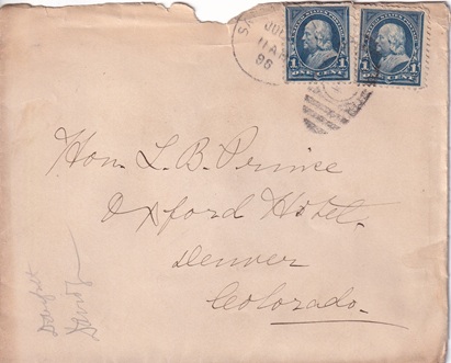 ![]() | Hand cancellation: "SANTA FE, N.MEX. JAN 22 1895". Has "ADVERTISED" and "UNCLAIMED" auxiliary markings. [TPC] |