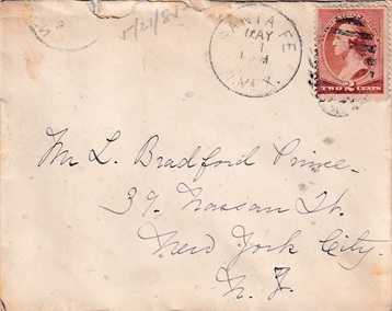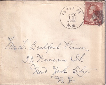 ![]() | Hand cancellation with cork killer: "SANTA FE, N.MEX. MAY 11 1885". [TPC] (L. Bradford Prince served as chief justice of the New Mexico Territorial Supreme Court from 1878 to 1882, and as the 14th Governor of New Mexico Territory from 1889 to 1893.) |