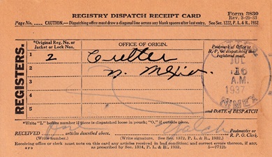 | Hand cancellation on receipt: "CUTTER, N.MEX. JUL 16 1937". |