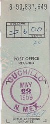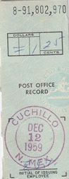 Hand cancellation on receipt: "CUCHILLO, N. MEX. DEC 12 1959".