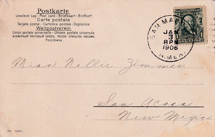 | Hand cancellation: "SAN MARCIAL, N.MEX. JAN 3 1906". [TPC] |