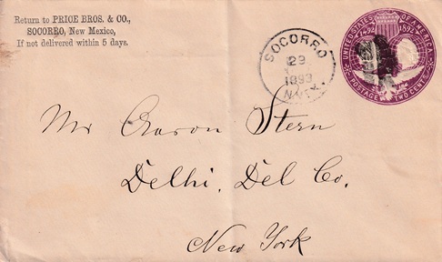 | Hand cancellation on back: "SOCORRO, N.MEX. FEB 12 1893". [TPC] |