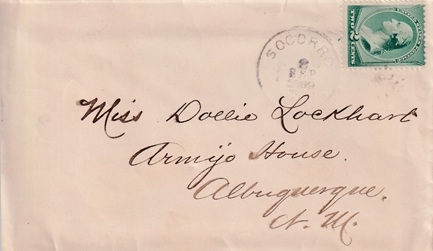 | Hand cancellation: "SOCORRO, N.MEX. SEP 8 1889". [TPC] |