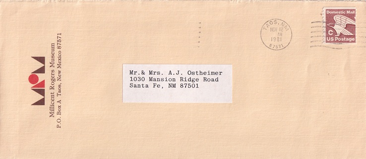 | Machine cancellation: "TAOS, NM 87571 DEC 1 1981". |