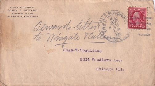 | Hand cancellation: "TRES PIEDRAS, N. MEX. AUG 26 1913". |