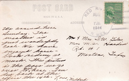 | Hand cancellation: "LLANO, N. MEX. JUL 24 1948". |