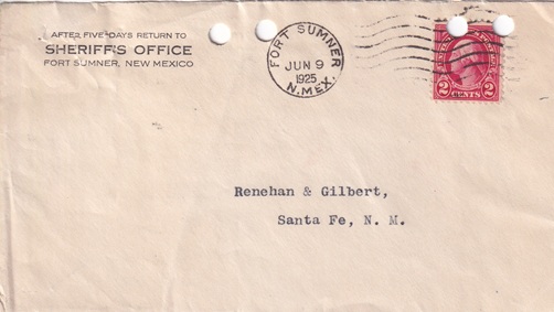 | Machine cancellation: "FORT SUMNER, N.MEX. JUN 9 1925". |