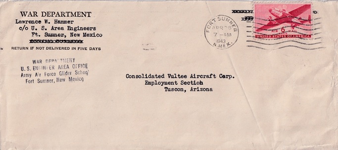 | Machine cancellation: "FORT SUMNER, N.MEX. MAY 3 1943". |