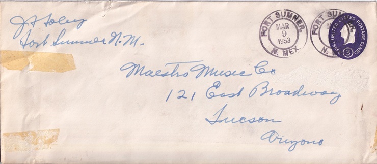 | Hand cancellation: "FORT SUMNER, N. MEX. MAR 9 1953". |