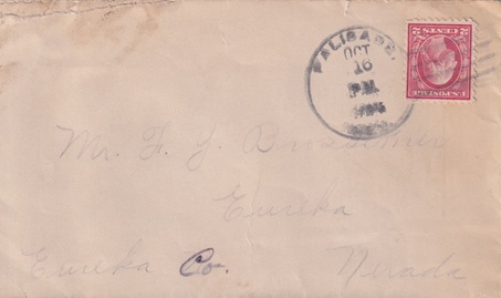 ![]() | Hand cancellation: "EUREKA, NEV. JAN 10 1905". |