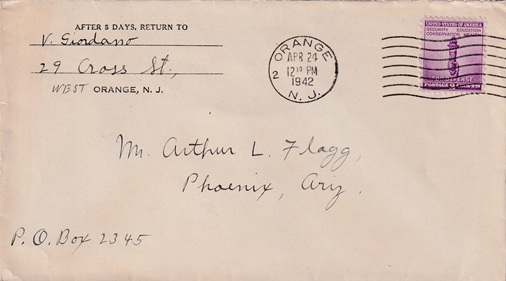 |  | Hand cancellation: "PALO VERDE, ARIZ. OCT 2 1942". |