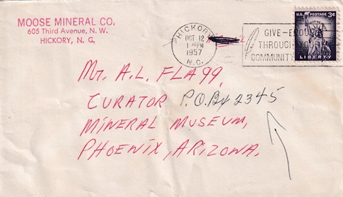 |  | Machine pictorial & slogan cancellation: "HICKORY, N.C. OCT 12 1957 | GIVE-ENOUGH THROUGH YOUR COMMUNITY CHEST |". |